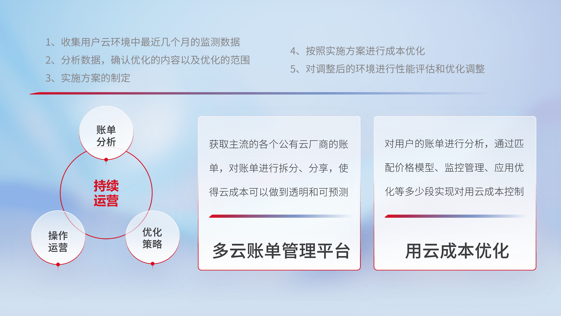 监控业务系统资源开销,,,,对资源的消耗精确计量,,实现费用的透明化管理,,,,不断提升资源使用率,,调整资源购买方式,,,降低资源费用成本,,用云成本可预测、、、、用云费用可优化,,,云资源配额有据可依。。。